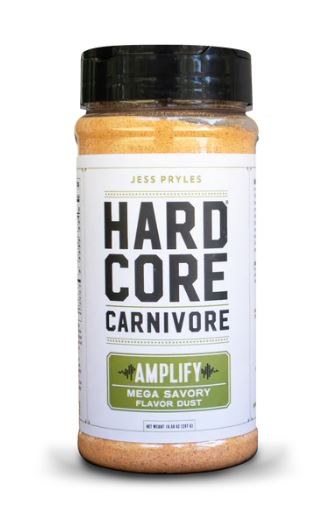 Hardcore Carnivore Amplify turns up the flavor intensity! This savory dust provides an extra boost of umami to anything you sprinkle it on. Use it with other rubs, in rib wraps, on veggies, fries, tableside, on eggs, guacamole... the uses are limitless. Think of it as your secret weapon taste amplifier.